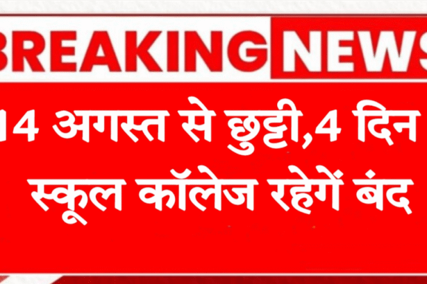 शिक्षा विभाग द्वारा हाल ही 14 अगस्त को अवकाश घोषित किया गया है । इस दिन स्कूल कॉलेज बंद रहेंगे जिससे शिक्षक, विद्यार्थियों और कर्मचारियों को लगातार चार दिन की छुट्टियों का आनंद मिलेगा ।